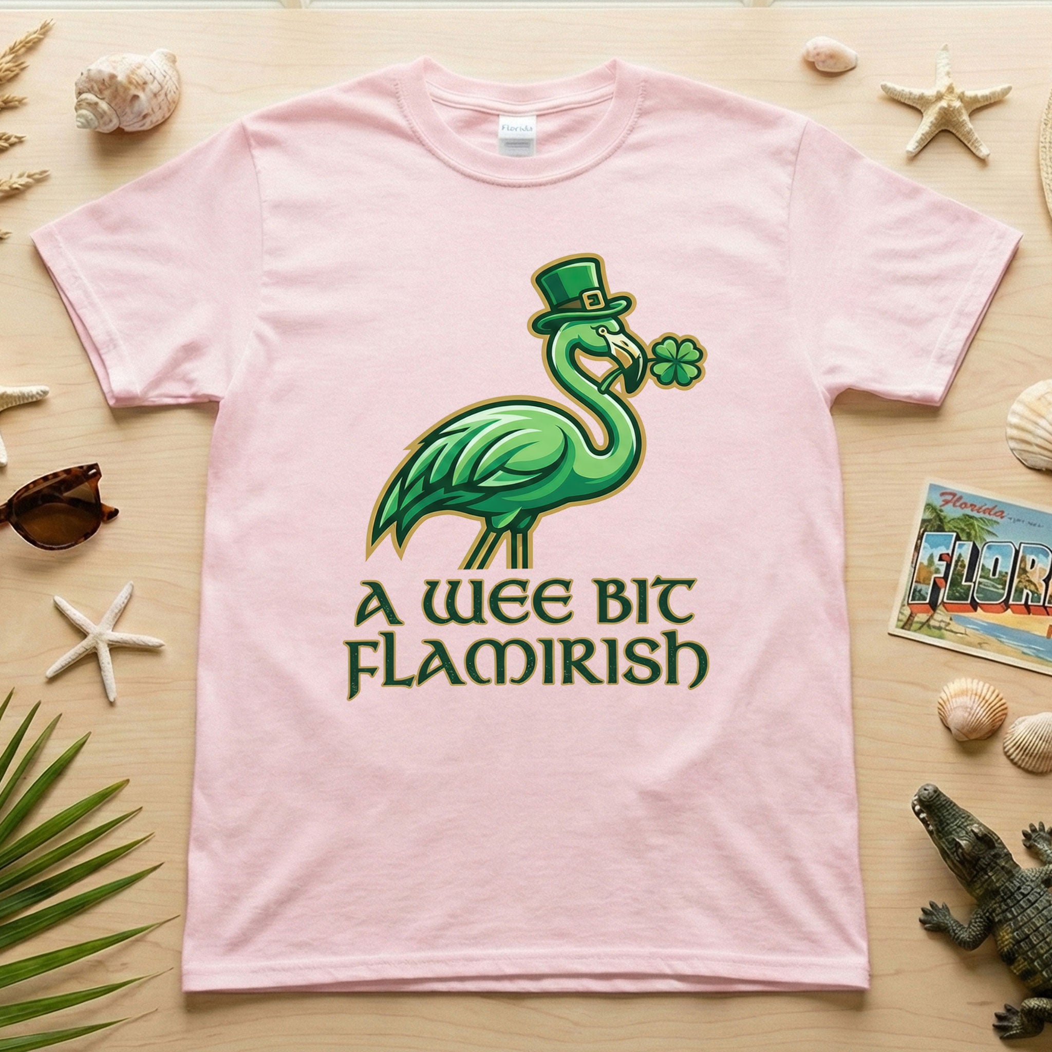 A Wee Bit Flamirish Green Flamingo St. Patrick's Day T-Shirt - Funny Irish Humor for Flamingo Fanatics