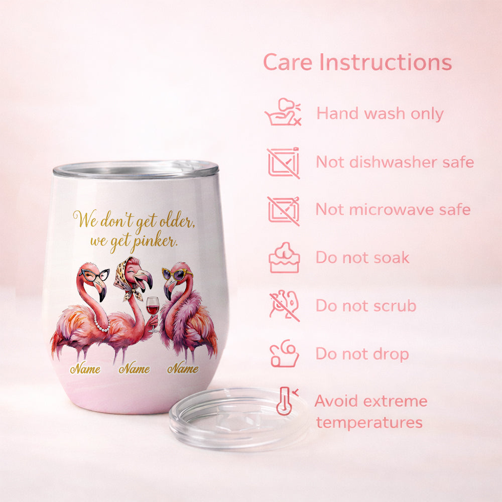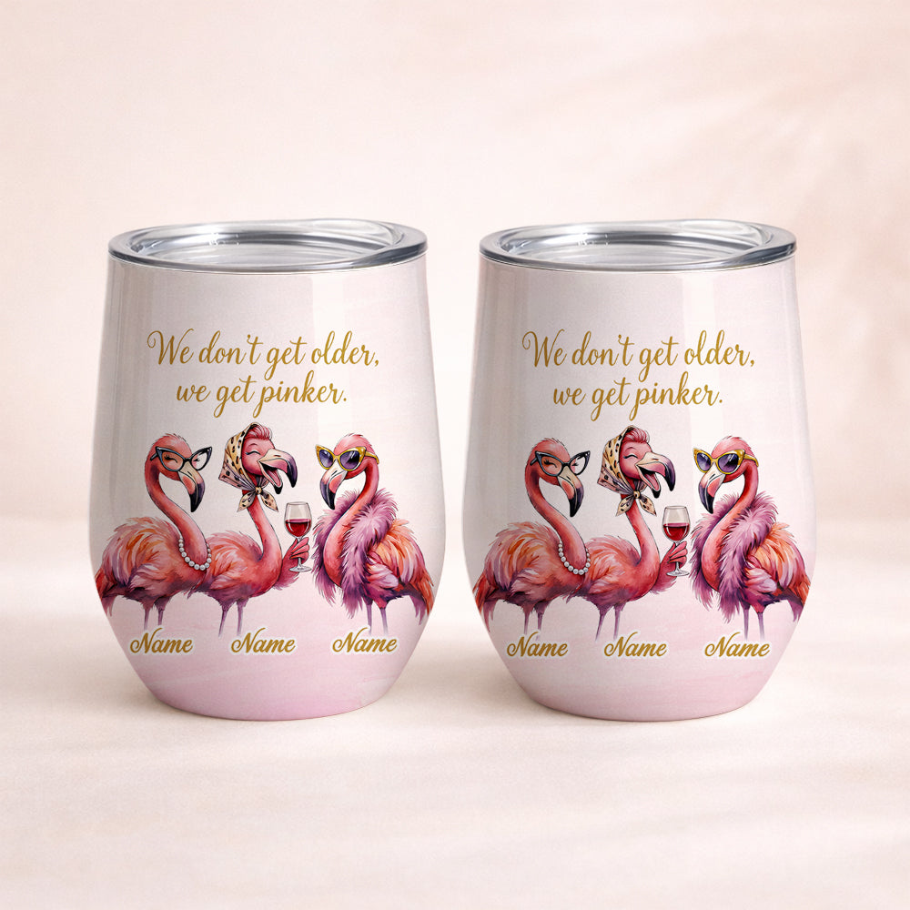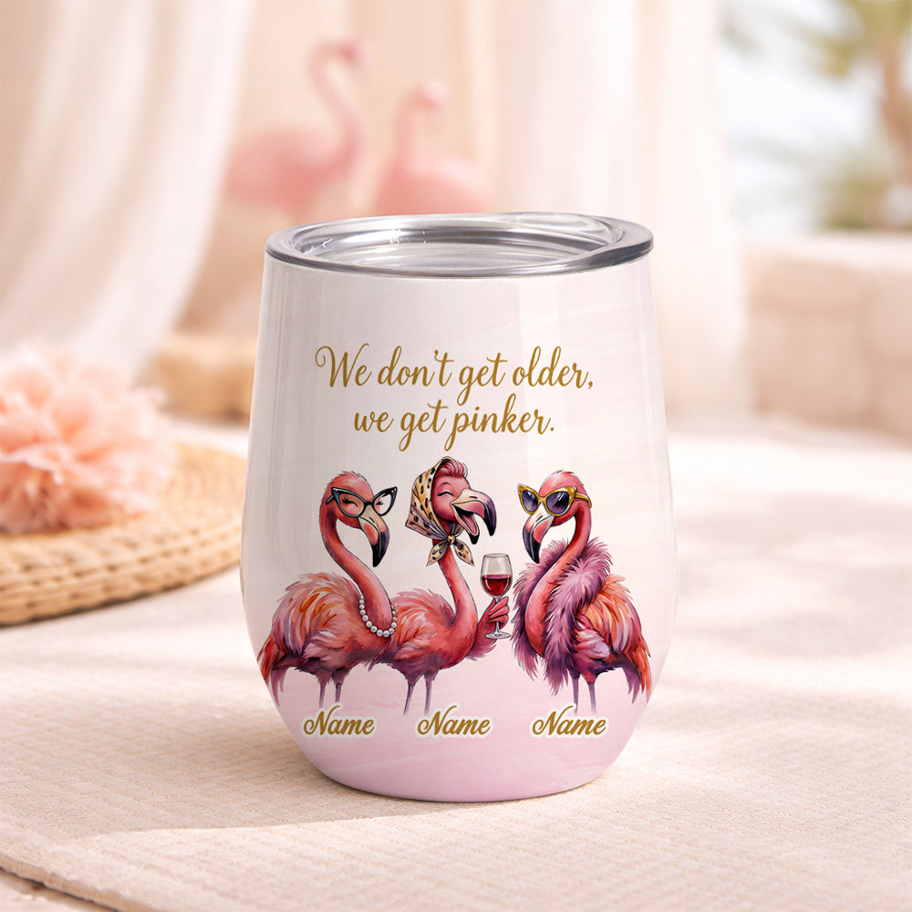 Classy Personalized Flamingo Wine Tumbler - "We Get Pinker" Best Friend Birthday Gift