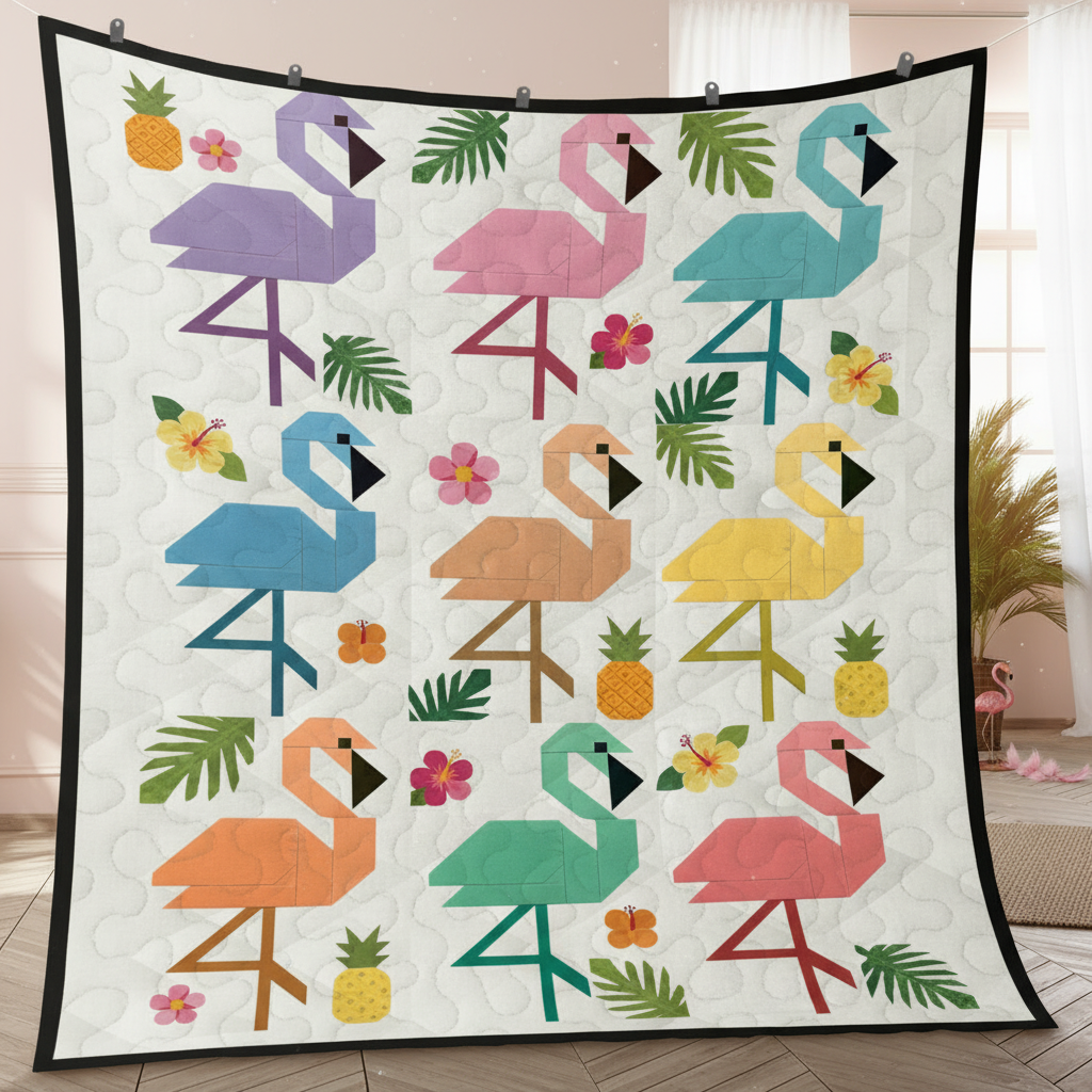 Colorful Geometric Flamingo Quilt - Ultra-Soft Tropical Patchwork Bedding