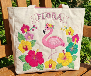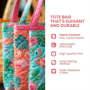 Custom Quilted Flamingo Tote Bag - Personalized Tropical Canvas Gift for Mom or Grandma