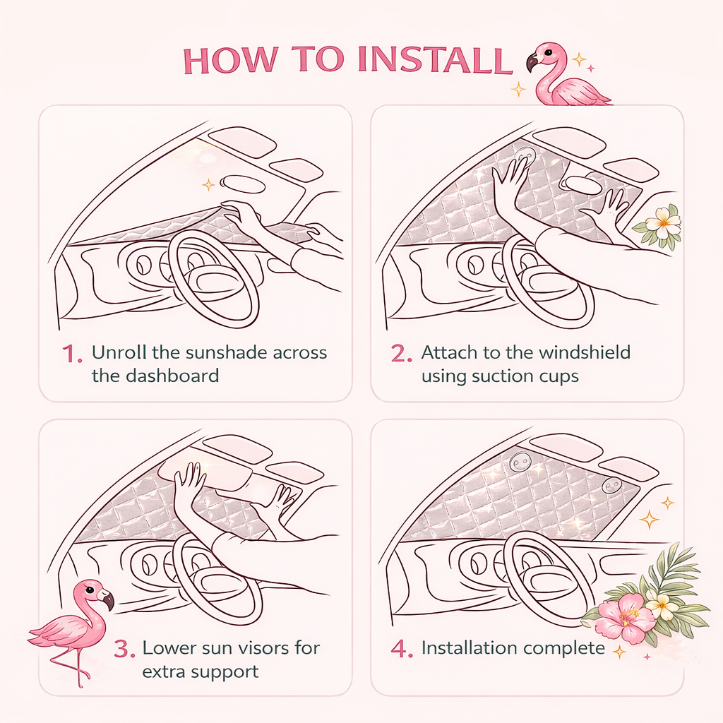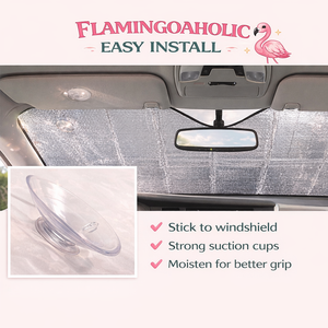 Ready to be the envy of the rec center? Simply unfold the sunshade across your windshield after you park. This shade is the perfect accessory for long tournament weekends, sunny summer commutes, or just showing off your fun side while running errands. Pair it with a flamingo steering wheel cover or floor mats for a complete interior makeover!
