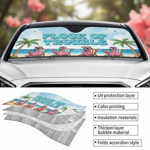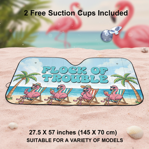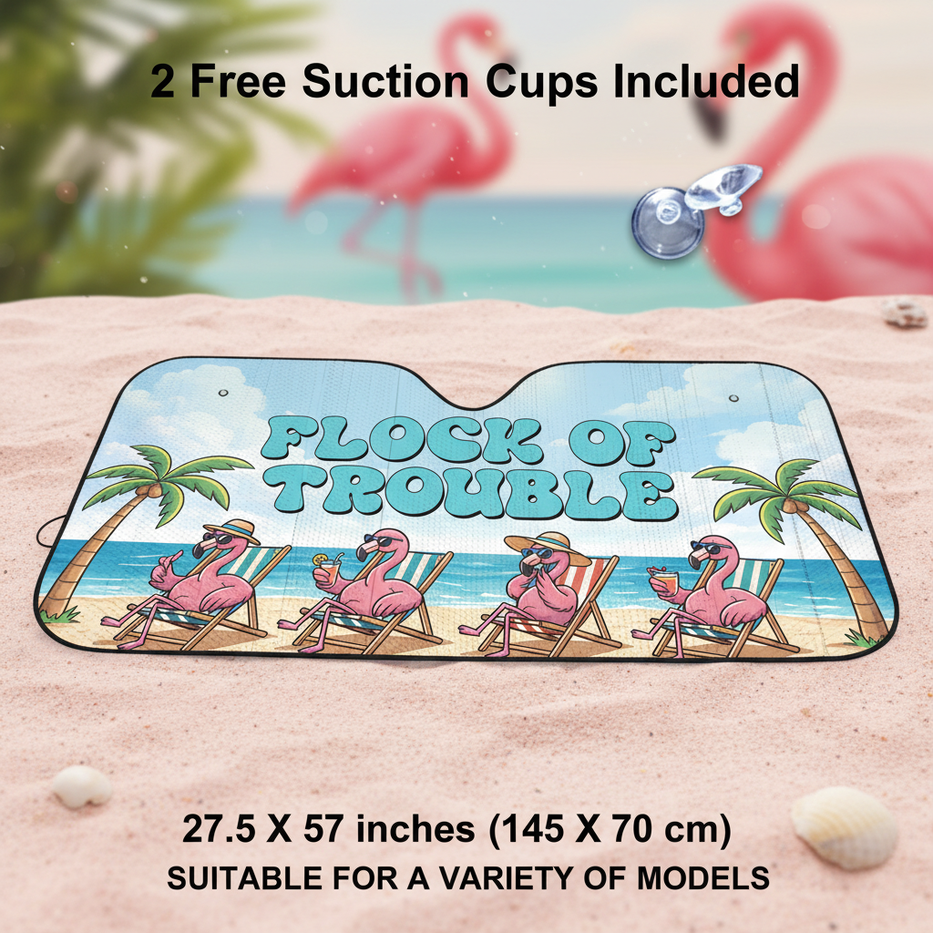 Funny "Flock of Trouble" Flamingo Car Sun Shade - Tropical Auto Windshield Protection