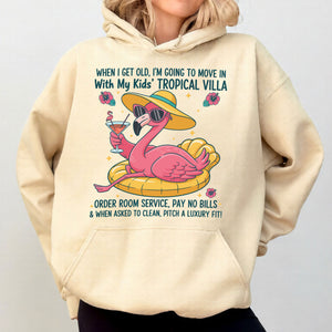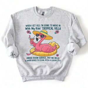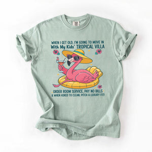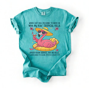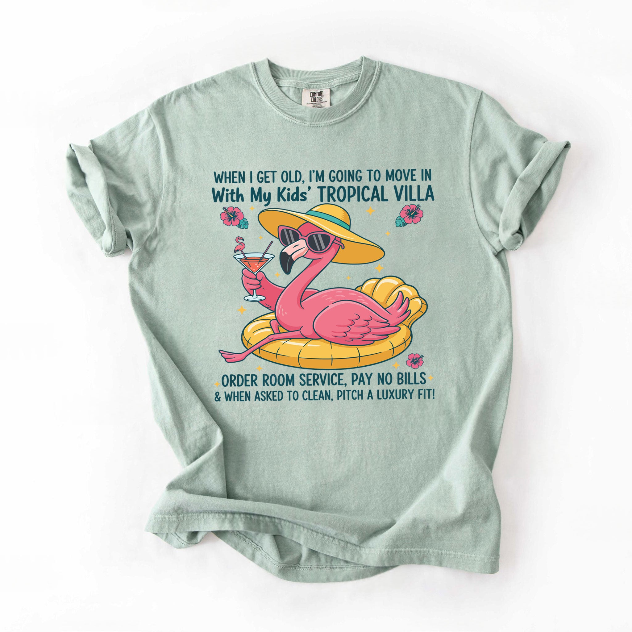 Fran, darling, we found your official uniform! Forget dusty savings accounts-this hilarious tropical graphic tee features a relaxed flamingo on a pool float, laying out the only retirement plan that matters: moving into the kids’ “Tropical Villa,” ordering room service, and absolutely refusing to lift a finger. This pastel sage green tee is the perfect, soft, lived-in garment for living that luxury fit life, starting now.