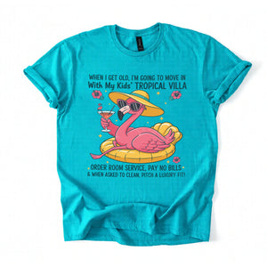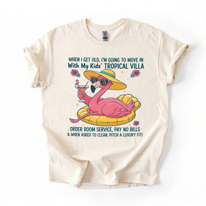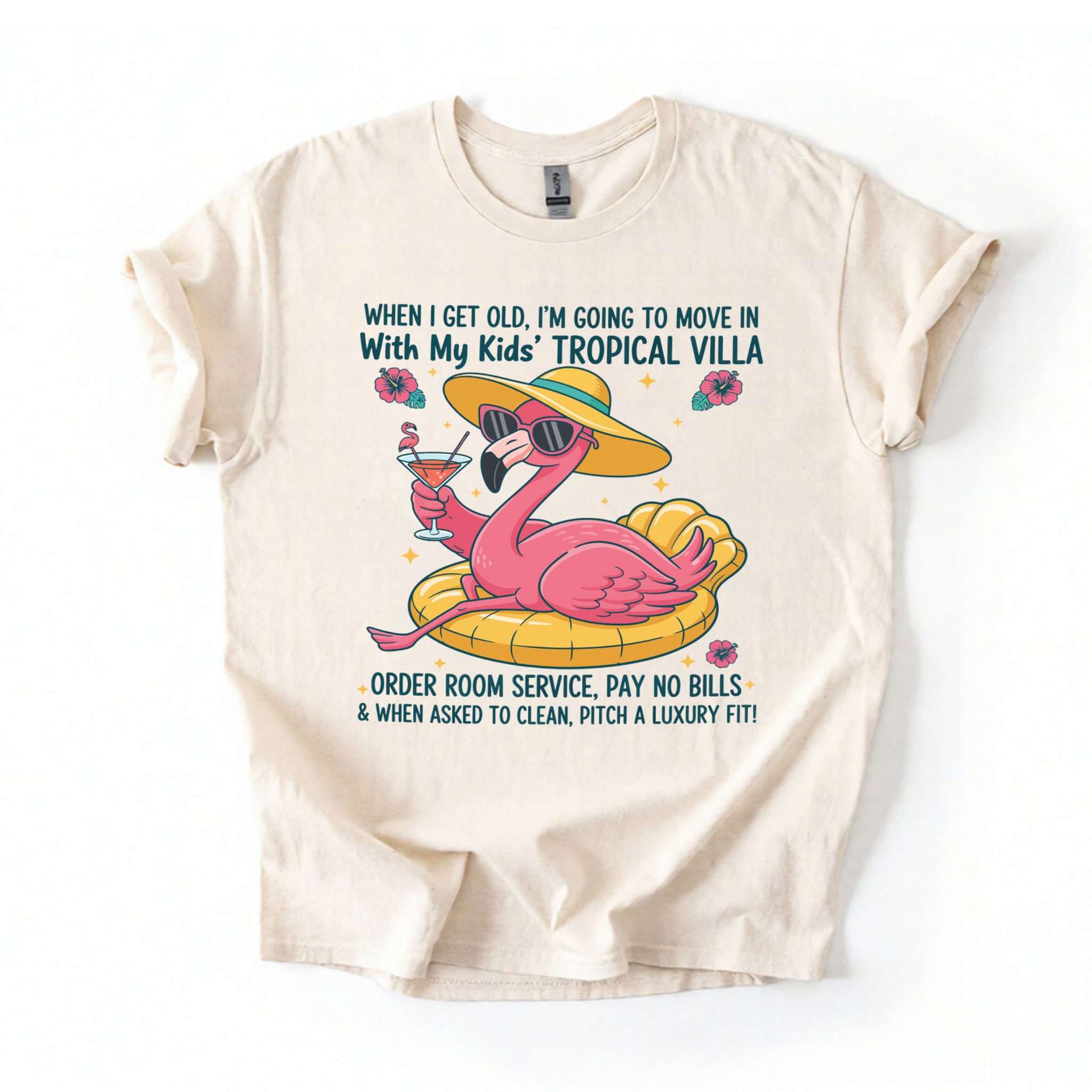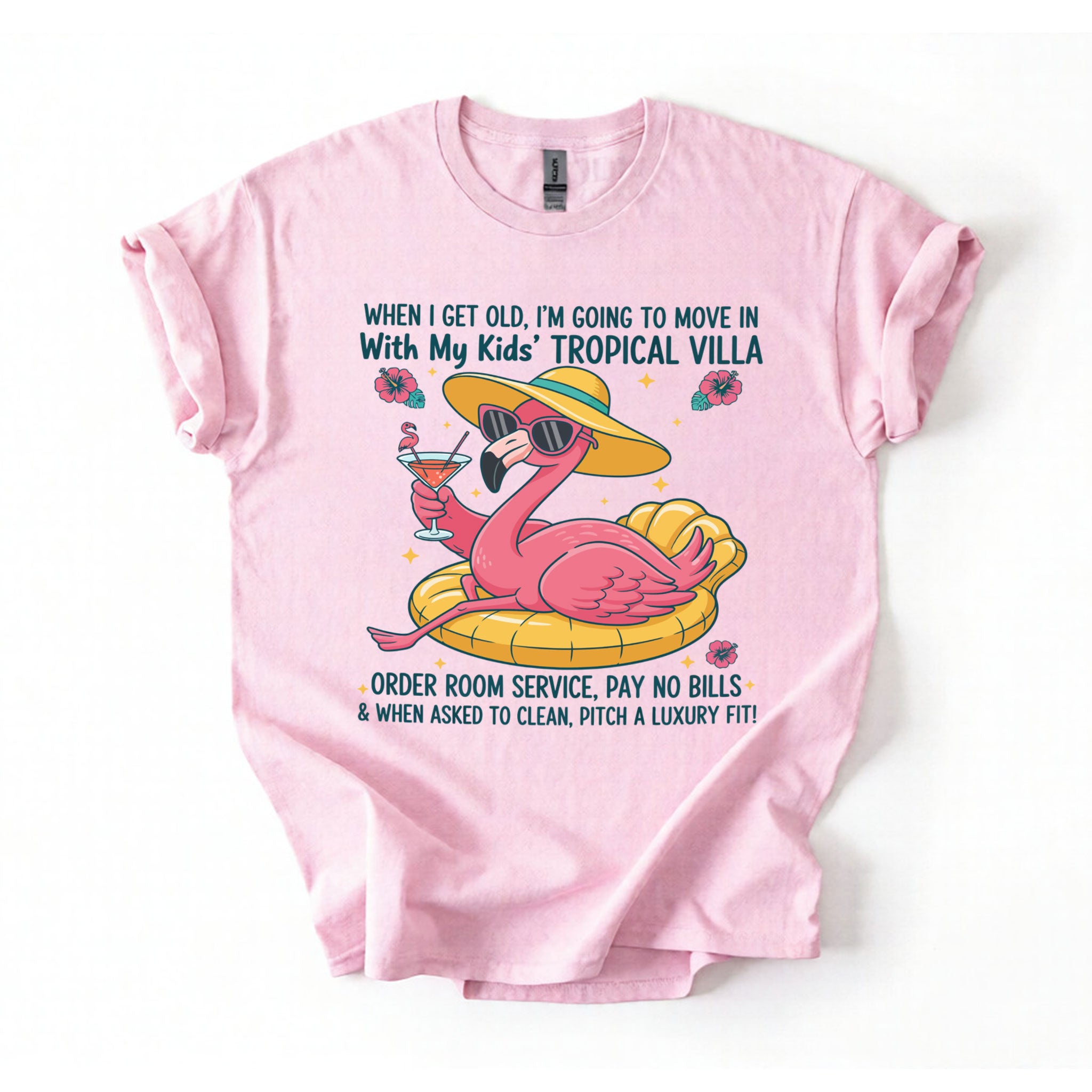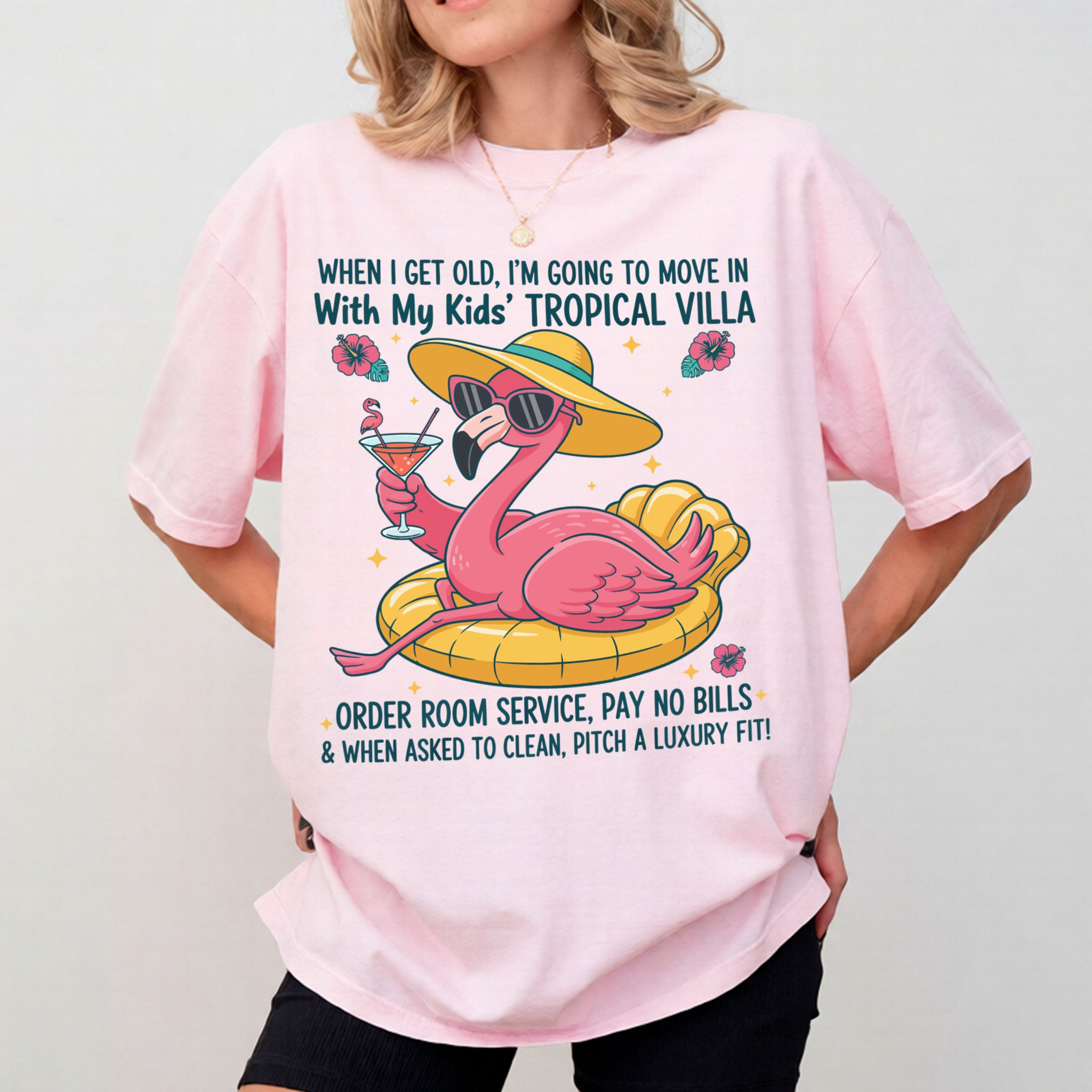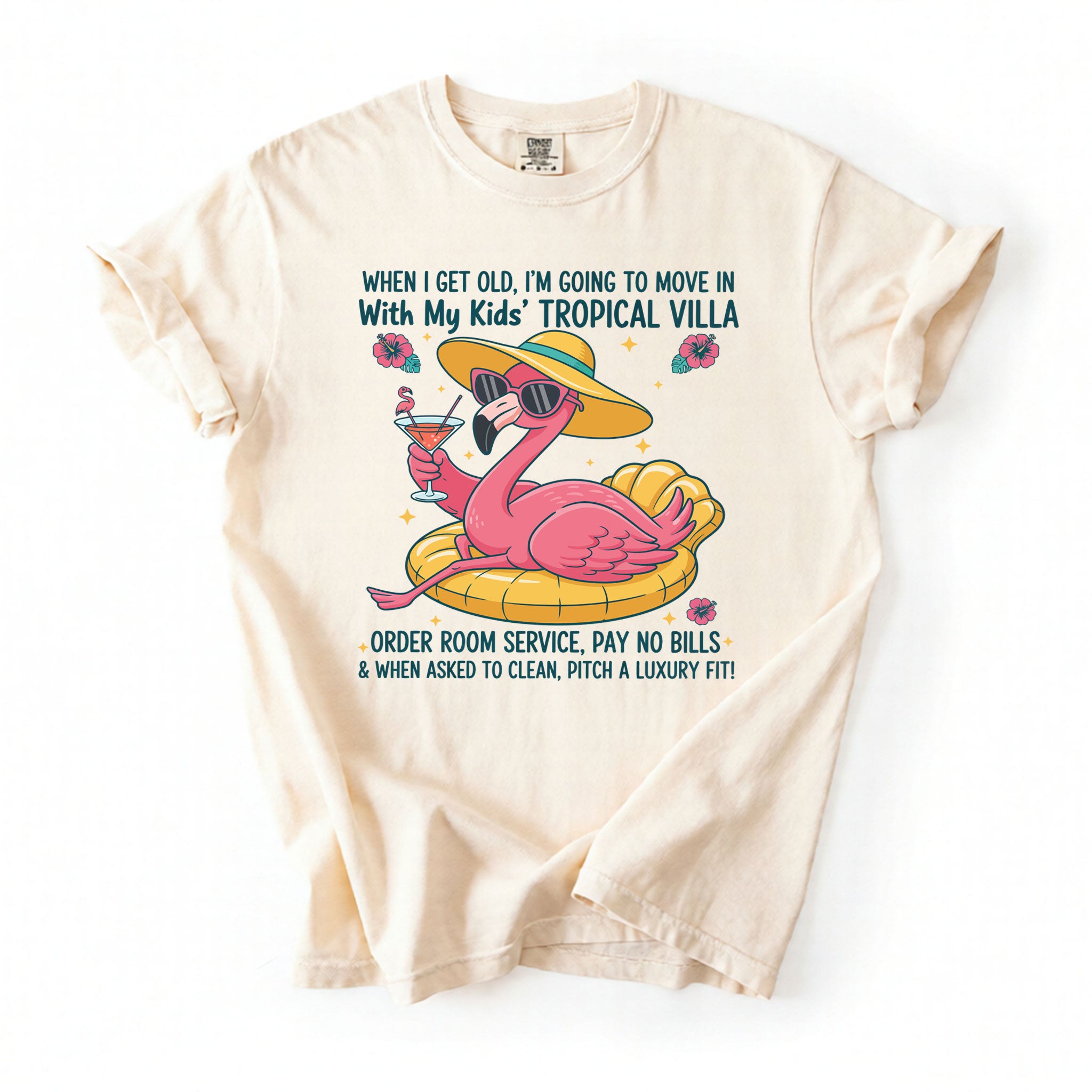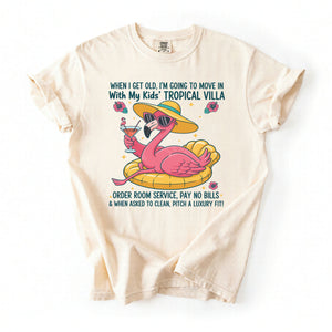 This tee pairs perfectly with casual comfort. Wear the Comfort Colors option rolled at the sleeves (as shown) with denim shorts for a relaxed summer look. The humorous graphic means it’s perfect for family gatherings, tropical vacation photos, or just lounging at home while planning your move into the kids' villa.