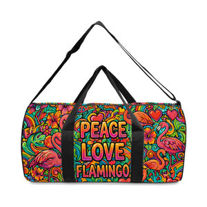 Groovy 'Peace Love Flamingo' Personalized Duffle Bag - Weekender Travel Gift for Her