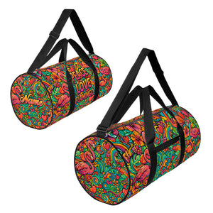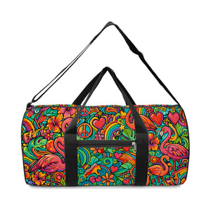 This vibrant, custom-designed duffle bag isn't just luggage; it's a mood! Channel your inner free spirit with our electric “Peace Love Flamingo” design, featuring highly saturated neon pinks, vivid corals, and swirling psychedelic teal. This personalized bag is the only accessory you need to bring the sunshine and bohemian flair wherever you go perfect for the Flamingo Fanatic who loves bold color and practical style.