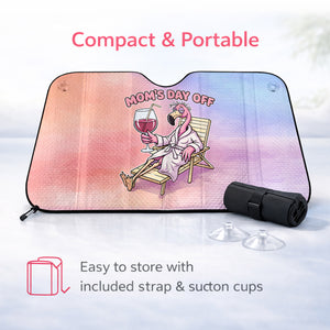 Hilarious Flamingo "Mom's Day Off" Car Sun Shade - Premium Auto Windshield Protector Gift
