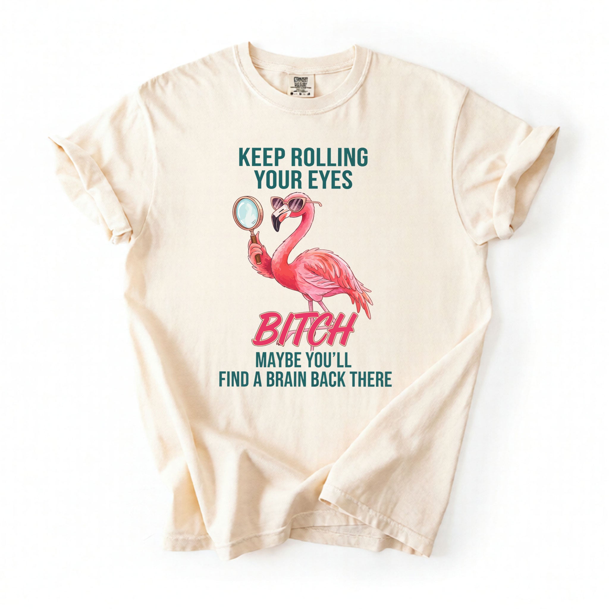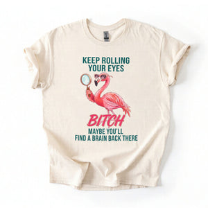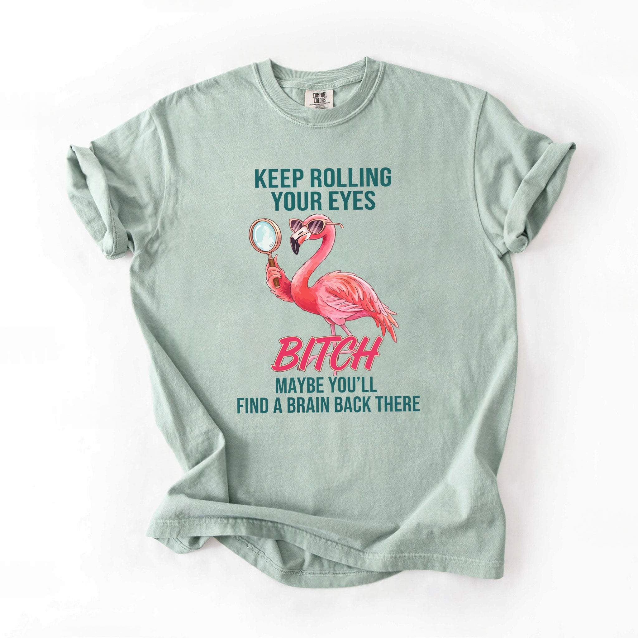 Fran, darling, sometimes you just need to let the world know exactly what you’re thinking and this shirt does the heavy lifting for you! This gorgeous, soft dusty pink tee features a highly judgmental flamingo in sunglasses holding a magnifying glass, ready to investigate the lack of intellect around her. It’s the perfect blend of sweet Southern charm (the pink!) and straight-up, honest sarcasm (the quote!). Guaranteed to get a laugh, or at least a highly dramatic eye-roll from anyone who deserves it.