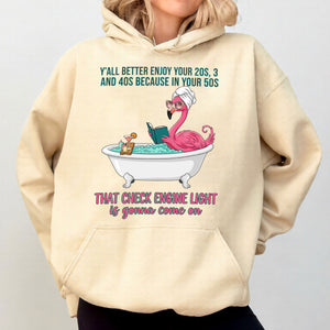Relatable Aging Humor: The ultimate insider joke for women turning 50 who know exactly what that internal "check engine light" feels like.
