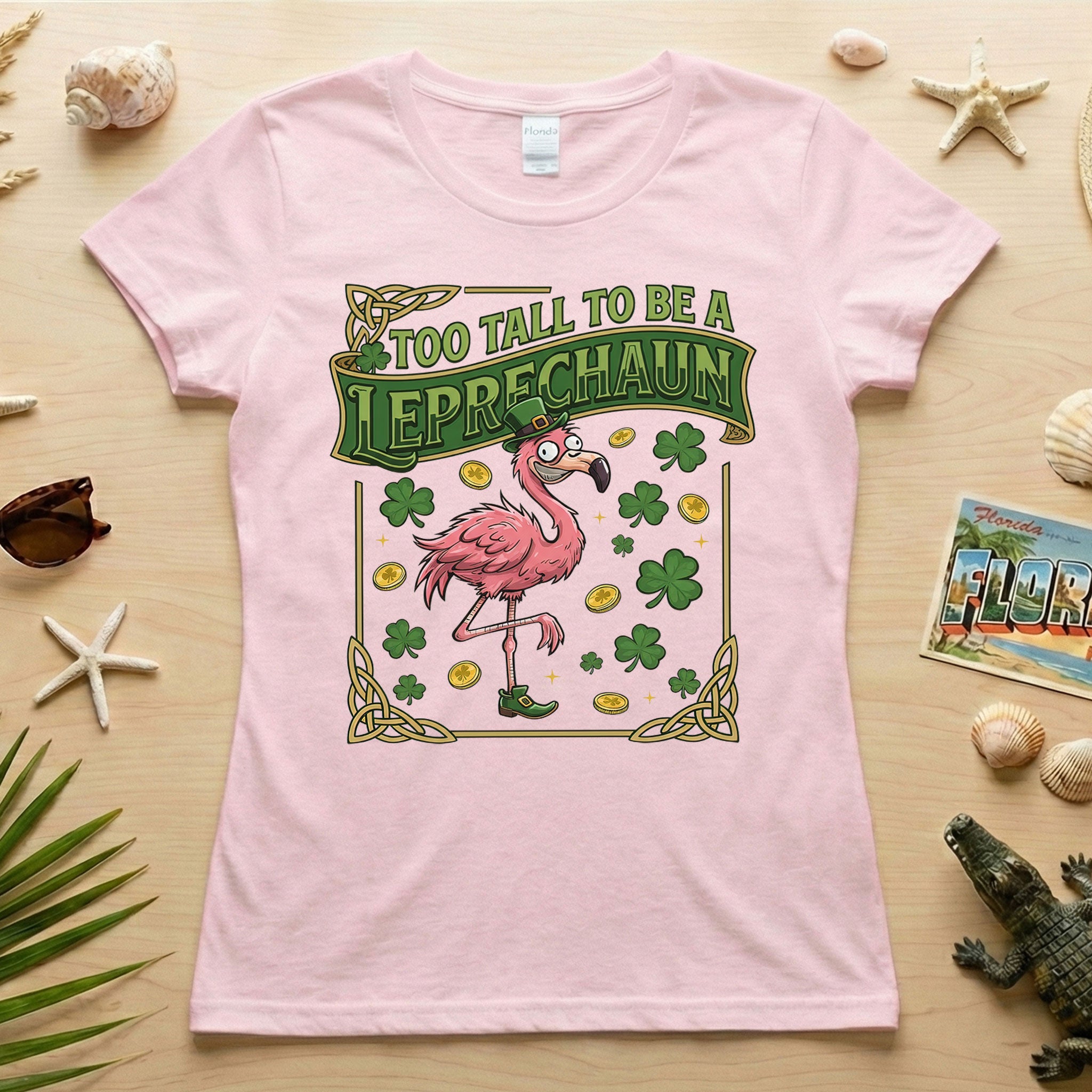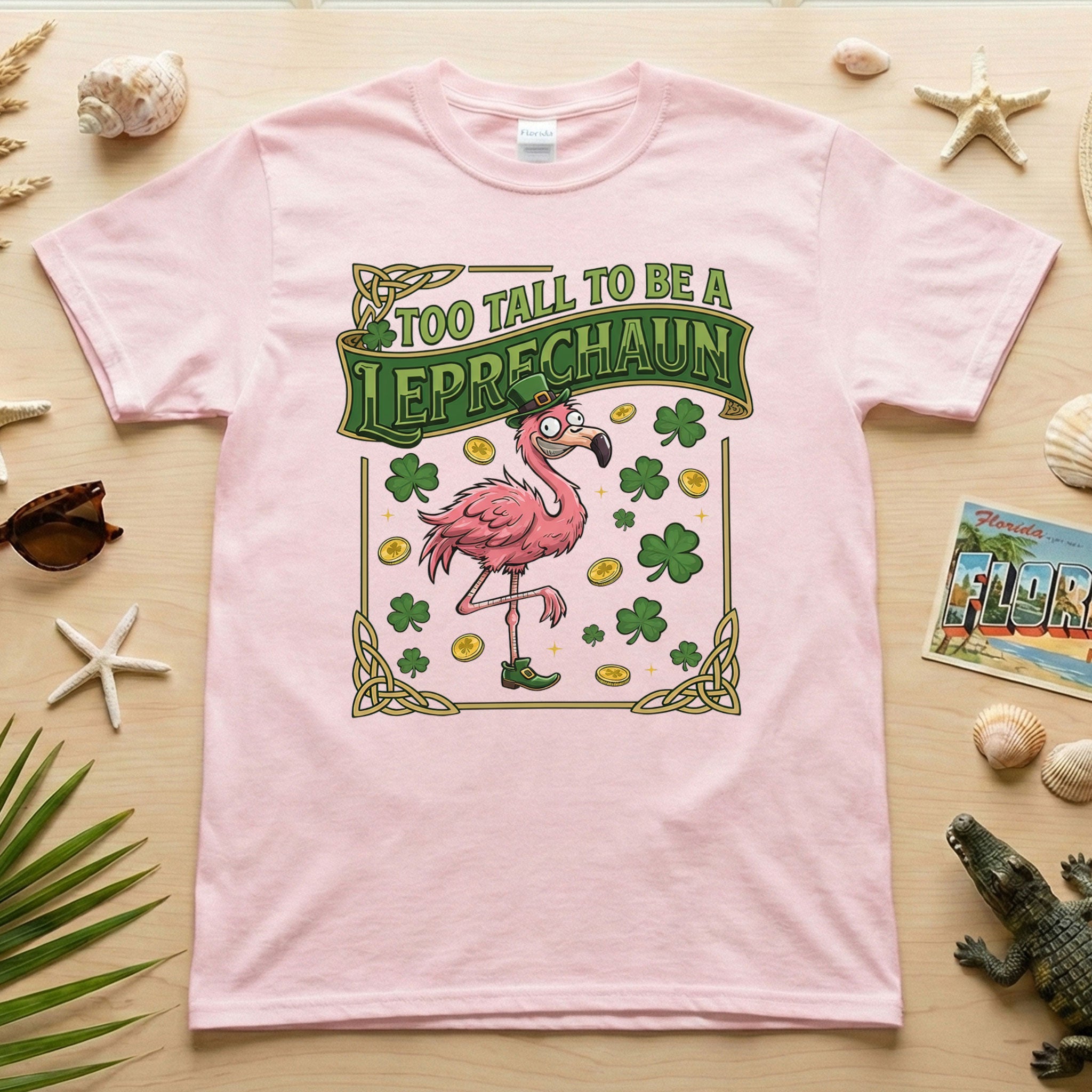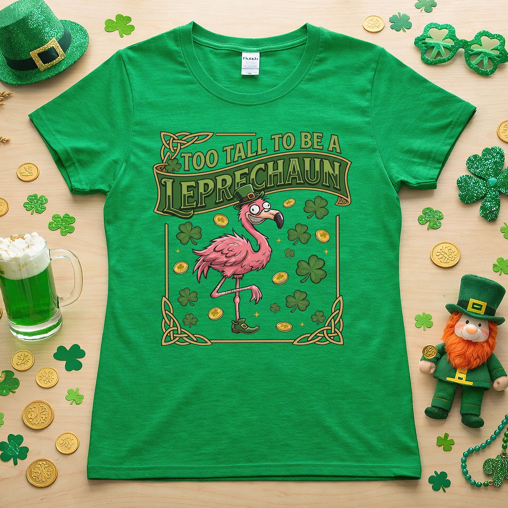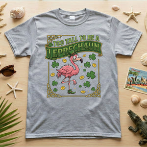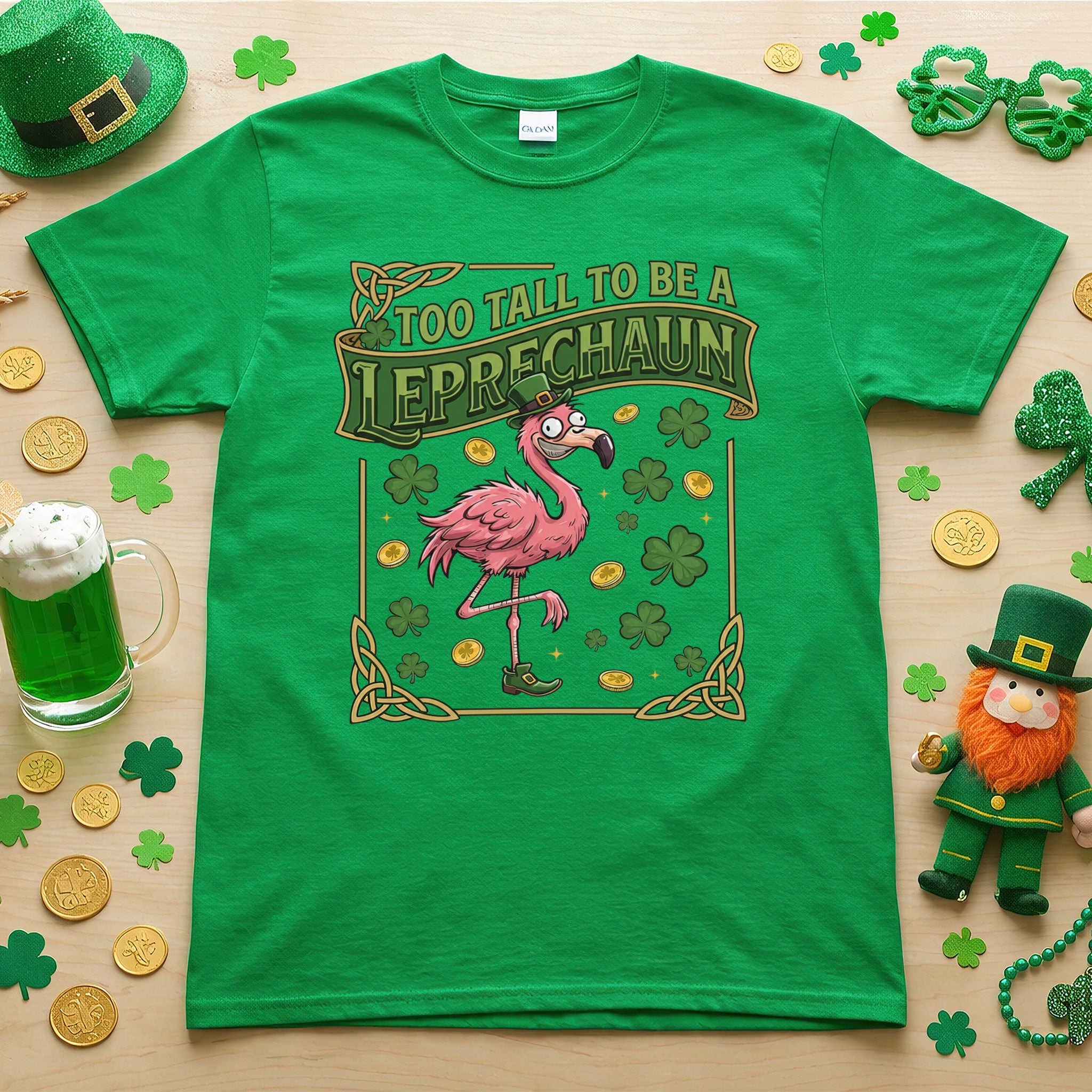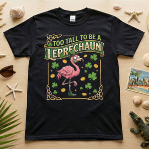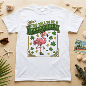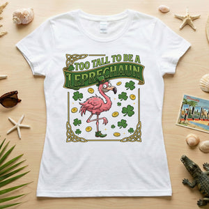 Too Tall To Be A Leprechaun Flamingo St. Patrick's Day Tee - Funny Irish Holiday Party Shirt