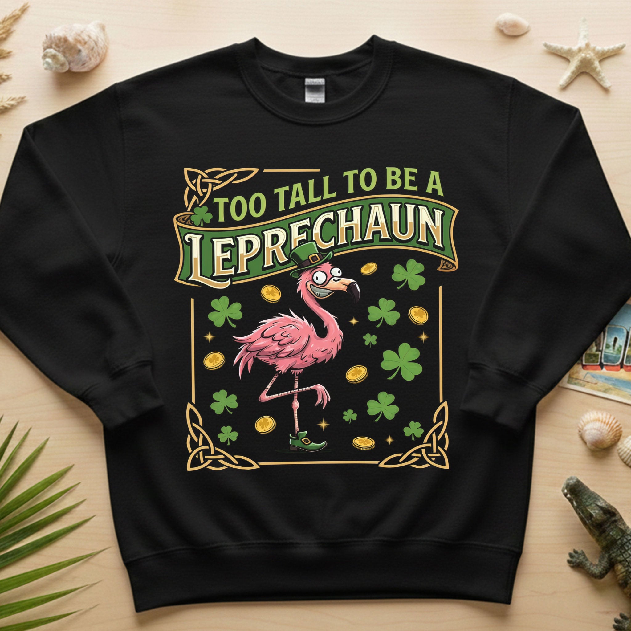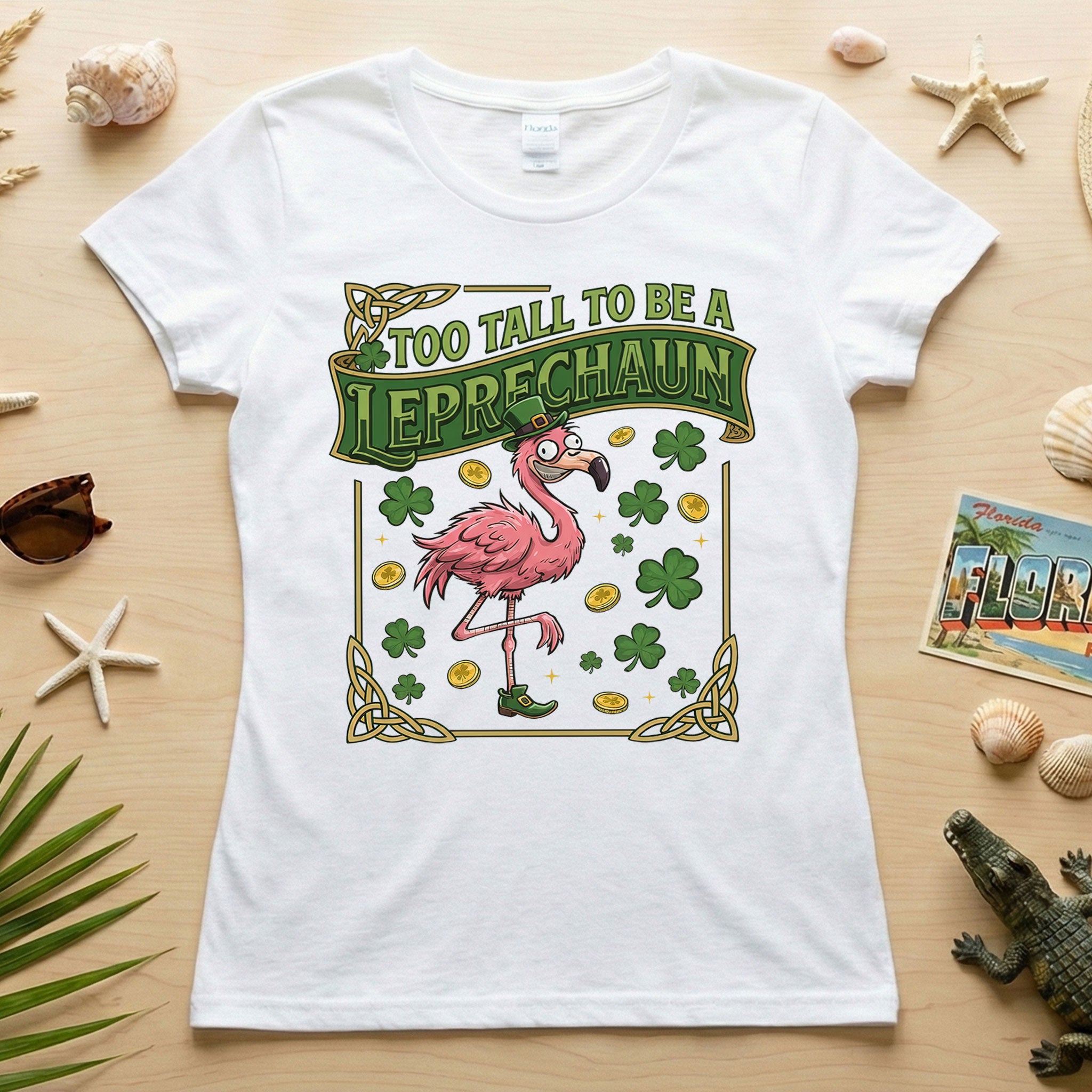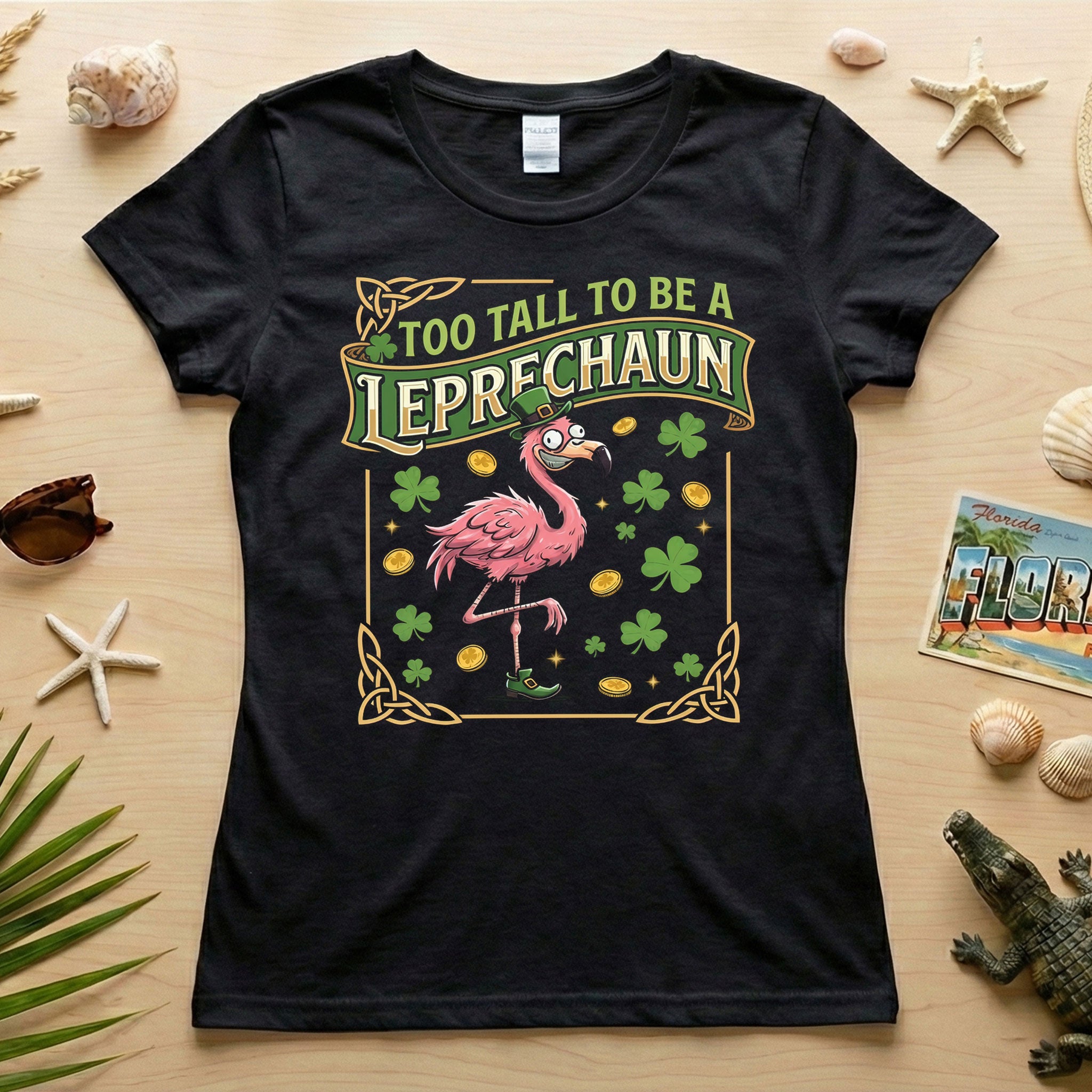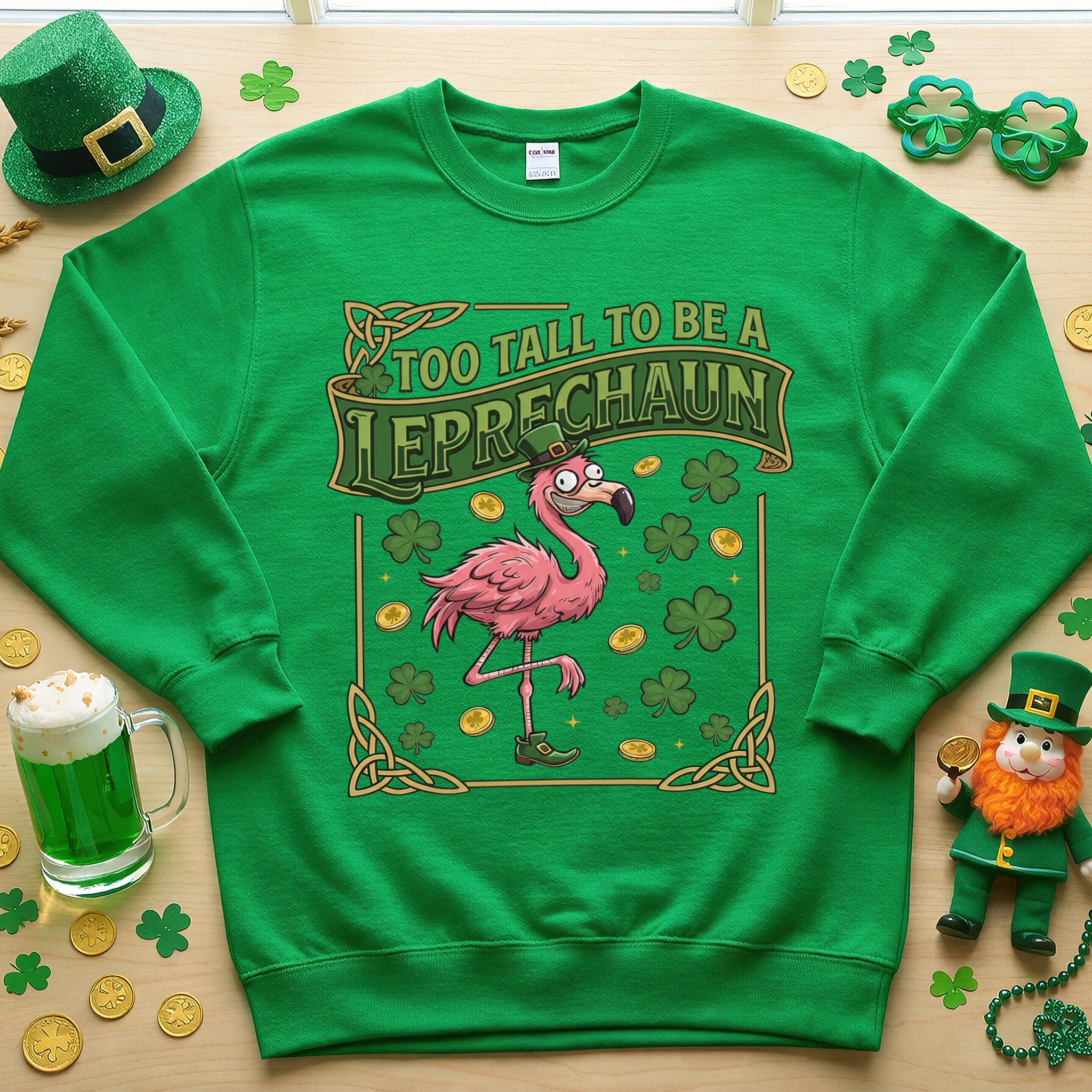 Too Tall To Be A Leprechaun Flamingo St. Patrick's Day Tee - Funny Irish Holiday Party Shirt