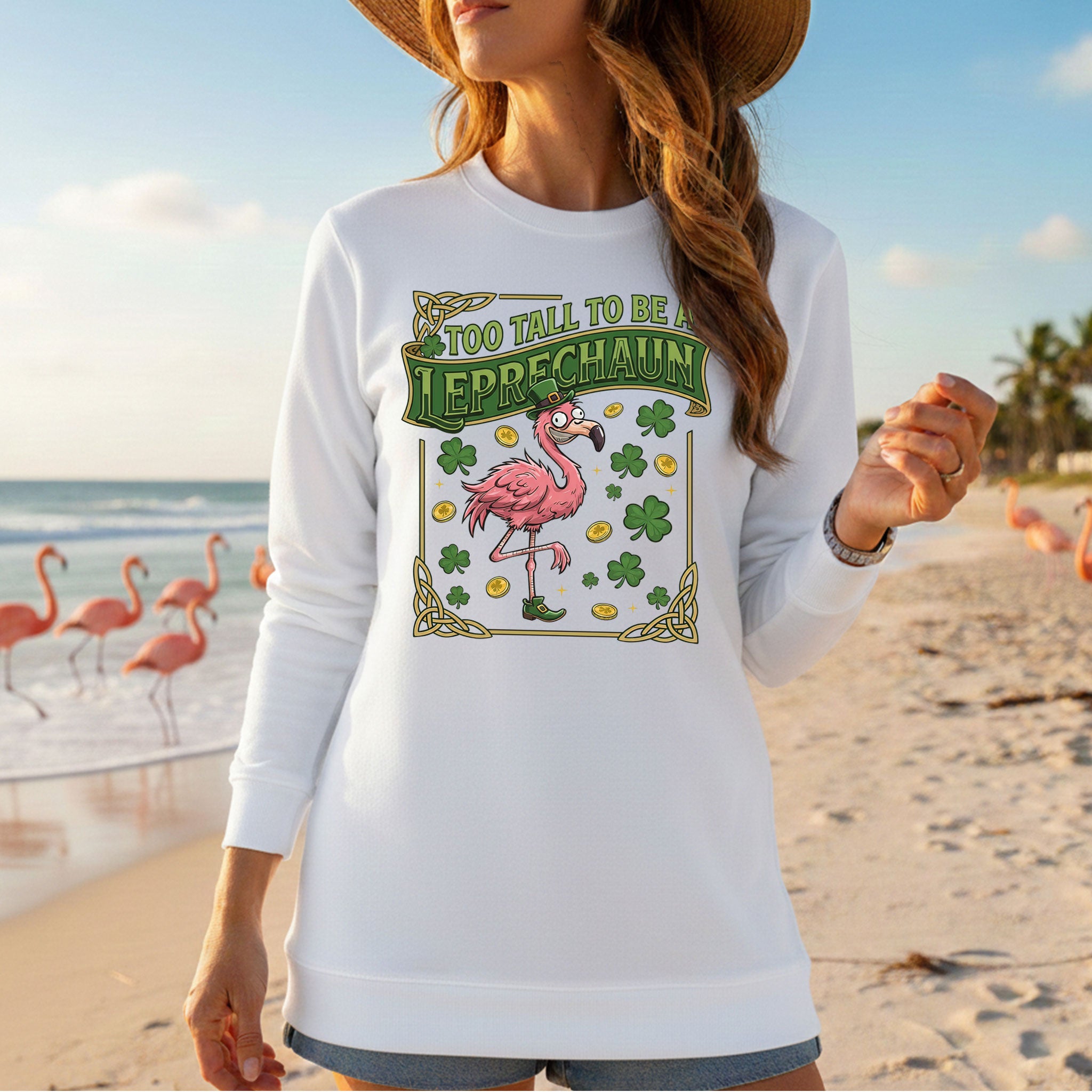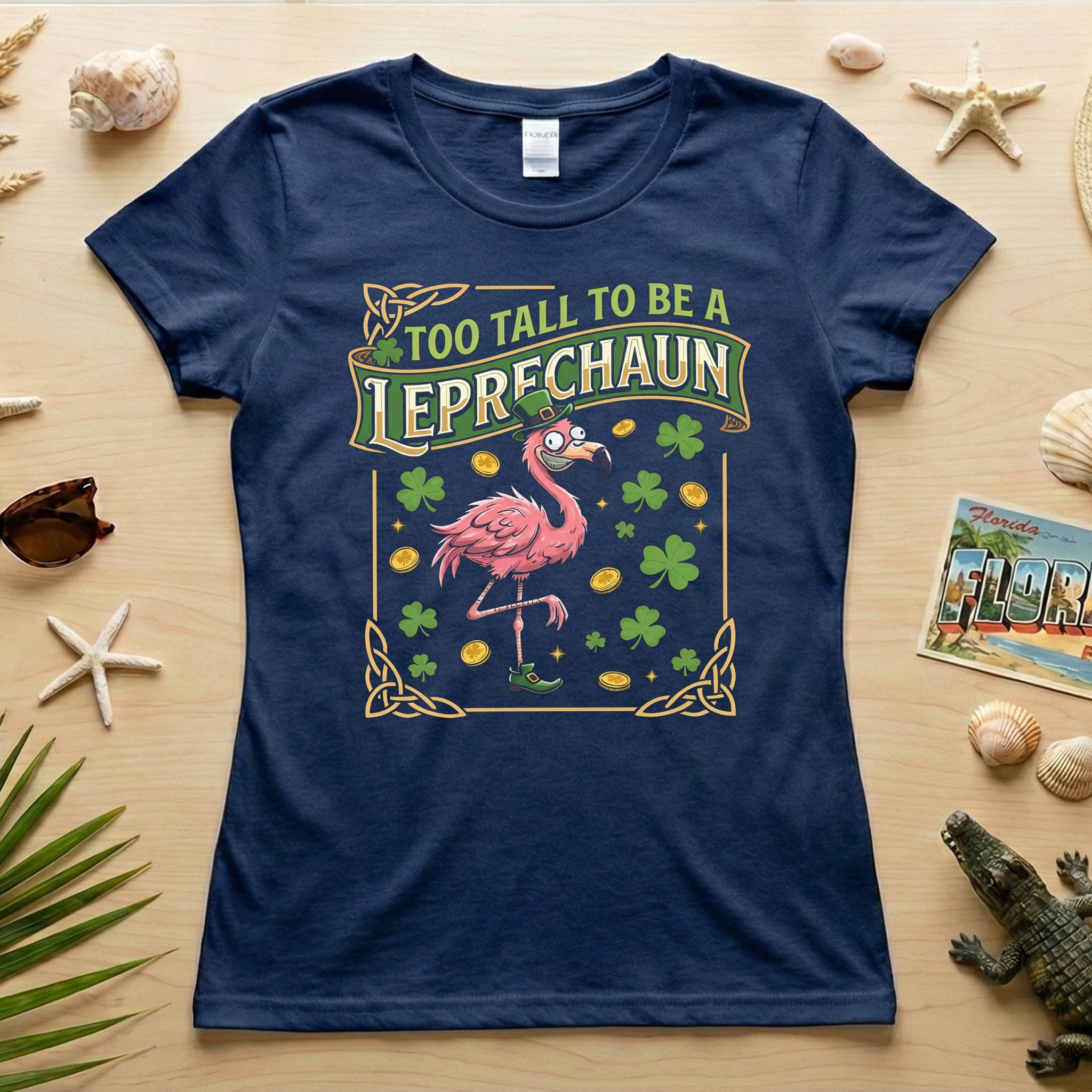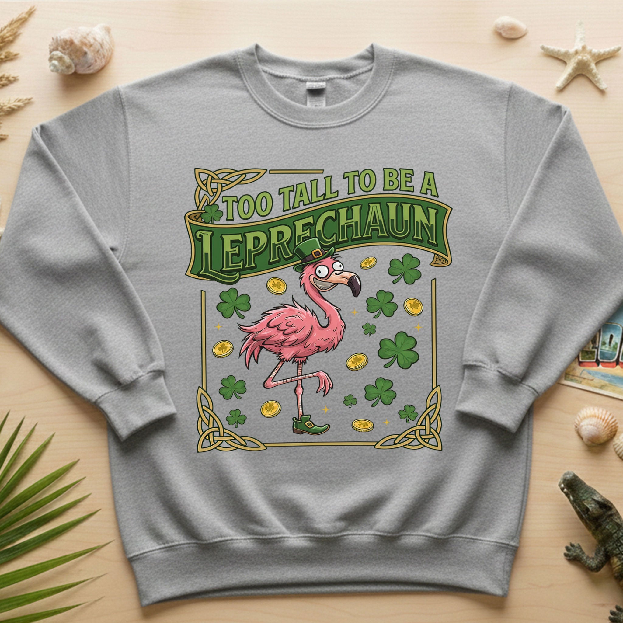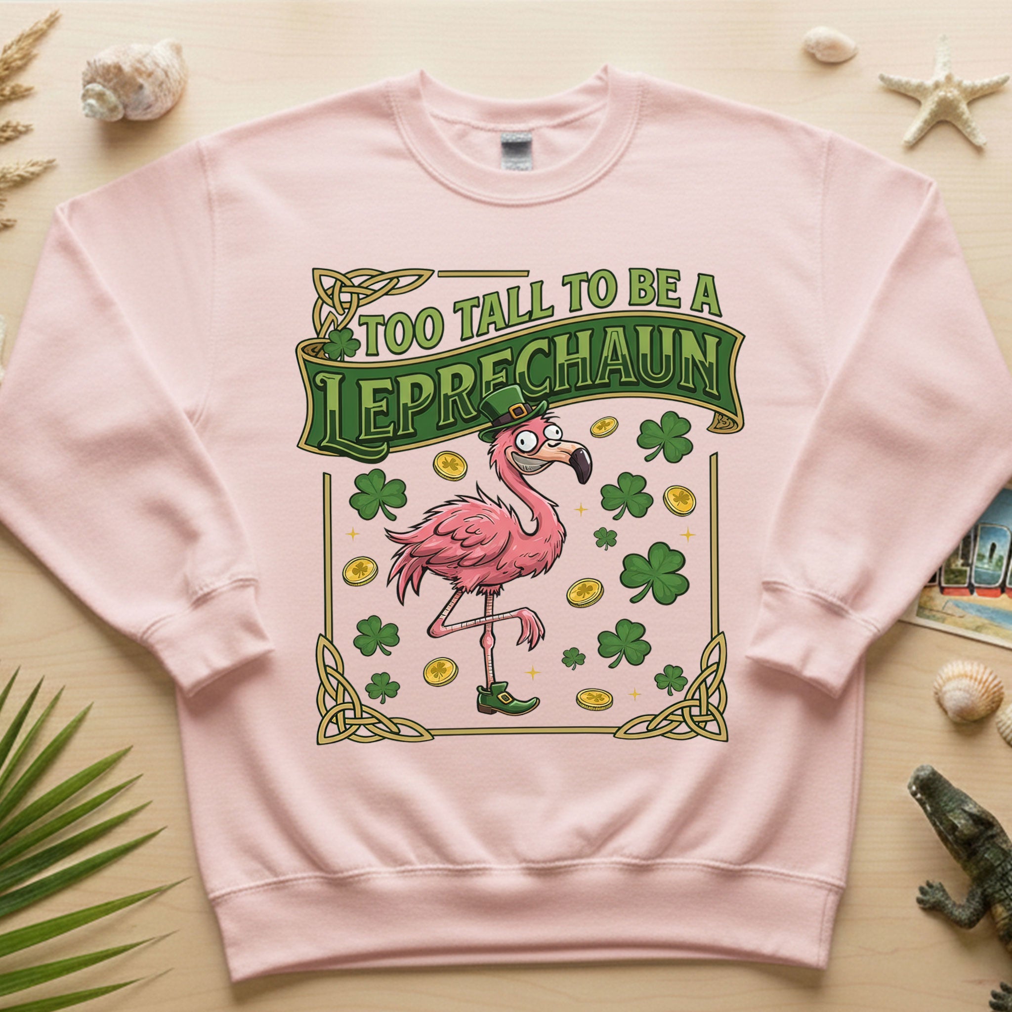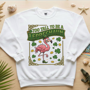 Too Tall To Be A Leprechaun Flamingo St. Patrick's Day Tee - Funny Irish Holiday Party Shirt