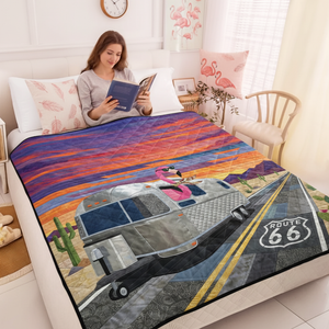 Home Vibrant Desert Sunset Flamingo Quilt Blanket - Route 66 RV Camper Decor